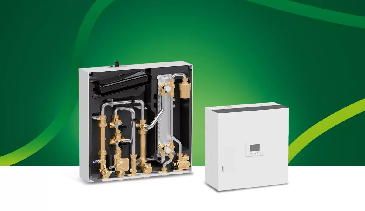 SATK32集成了一个热交换器,将一次热力系统与室内系统水水分离,可以实现高、中、低温供暖,提供多功能性和最佳性能水平。